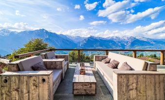 Very beautiful chalet "Alpview VG", 3 storeys, built in 2017. On the outskirts, 1.1 km from the centre, in a quiet position. Private: well-kept garden 1'000 m2 (not fenced). Hot tub. In Winter: please take snow chains, 4x4 car recommended in winter. Parking (for 2 cars). Shop 1 km, restaurant 1 km, bakery 1 km, bus stop "Haute-Nendaz, station/poste" 1.5 km, railway station "Sion" 17.2 km, outdoor swimming pool 700 m. Golf course (18 hole) 15 km, tennis 700 m, skisport facilities 2 km, ski bus stop 600 m, ski-kindergarten 700 m, cross country ski track 5 km, ice rink 1 km, children's playground 850 m. Nearby attractions: Alaïa Bay - Surf Park 16 km. Well-known ski regions can easily be reached: Nendaz Tracouet 4 Vallées 2 km. Hiking paths: Bisse du Milieu 1.5 km. Please note: ski bus (free of charge). "Chalet Gerritsen", 6-room chalet 280 m2 on 3 levels, north-west facing position. Spacious and bright, modern and luxurious furnishings: entrance hall with separate WC. Large living/dining room with open-hearth fireplace, cable TV, hi-fi system and Home cinema. Exit to the terrace, north facing position and west facing position. Large, open kitchen (oven, dishwasher, 5 gas rings, toaster, kettle, microwave, freezer, electric coffee machine, raclette grill, cooking island, fondue Set (cheese)). Exit to the terrace. Underfloor heating. On the lower ground floor: 1 room with 1 french bed (180 cm, length 200 cm), bath/bidet/WC and cable TV. Exit to the garden. 1 room with 1 x 2 bunk beds (90 cm, length 200 cm), cable TV. Exit to the garden. 1 room with 1 french bed (180 cm, length 200 cm), shower/WC. Exit to the garden. Shower/WC, Sauna. Upper floor: open office. 1 room with 1 french bed (180 cm, length 200 cm), bath/shower/WC, double hand-basin and cable TV. Exit to the balcony, north facing position and south facing position. Parquet floors. Large terrace, north facing position and west facing position, large garden. Terrace furniture, barbecue, deck chairs (2). Marvellous view of the mountains and the valley. Facilities: washing machine, dryer, children's high chair, baby cot, hair dryer. Internet (WiFi, free). Parking (2 cars), in winter at 50 m. Please note: non-smokers only. Maximum 1 pet/ dog allowed. 2 personal ski lockers available at the departure of the gondola.