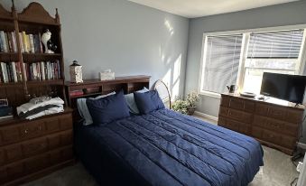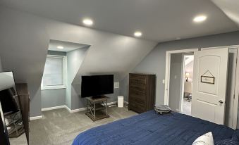 Upstairs King 1 BR : upstairs you will find the larger bedroom. This bedroom has a king size memory foam bed full furnished with Samsung smart tv. Plenty of natural sunlight with our favorite woozoo fan.