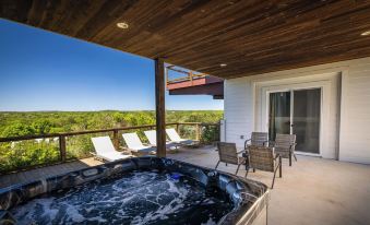 Set on a cliff above the Guadalupe River in the beautiful Texas Hill Country, the trendy-modern Guadalupe Blanca by skyhouse collection has sweeping views of the Guadalupe River and the surrounding landscape. Although shopping, dining, and outdoor recreation are just minutes downstream in Gruene, you may find you never want to leave this bright, airy sanctuary, above the fray of everyday life.
