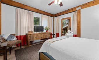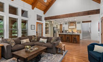 The property features vaulted ceilings, wood floors, kitchen with farmhouse sink / stainless steel appliances / gas stove for cooking large meals, a couples bubble massage tub, separate private deck, *NINE* flat screen TVs, large open patio with fire pit gas grill, 300 thread-count sheets, built-in bunk beds… You’ll be glad you stayed!