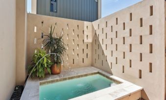 Enjoy a plunge pool on the first floor and a gated courtyard. There's also a balcony on the third floor, accessible from the kitchen.