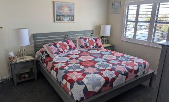 A comfy king-sized bed in the Master bedroom with windows overlooking the surf! (that is if you are standing or sitting up)