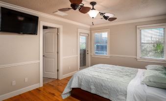 The master bedroom has a king size bed and a full bath. Both guest rooms offer a queen size bed with flat screen TV's. Both guest bedrooms share a full bath.