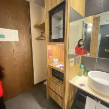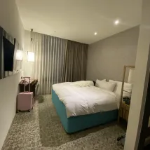 Комната немного маленькая, но полностью оборудованная. В вестибюле можно приобрести бесплатную воду, кофе и закуски. Расположение отеля относительно отдаленное. В Нью-Тайбэе он находится далеко от достопримечательностей. К счастью, он находится относительно близко к станции метро Xuhui Middle School, примерно в 10 минутах езды. Однако рядом идет стройка, поэтому нести чемодан будет сложно.