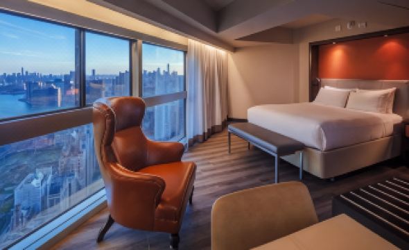 3. Состояние номера: Поскольку это был конец года, проживание на Манхэттене было невероятно дорогим. В этом месте был отличный размер номера и вид за свою цену. Вид на Манхэттен был закрыт зданием, но вид был со стороны Лонг-Айленда.