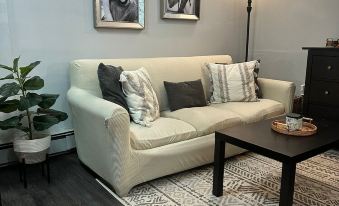 Fully furnished ample studio apartment, located in the bsmt of a luxury brick townhouse. Separate entrance , high ceiling recently decorated Equipped with a split 12000 btu AC split unit. Desk, couch and more. About pets:No pets allowed.About checkOut:Check out before 11:00 AM.About children:Adults only.About checkIn:Check in after 4:00 PM.About smoking:Smoking is not permitted.About minBookingAge:Minimum age to rent: 21.About events:No events allowed.