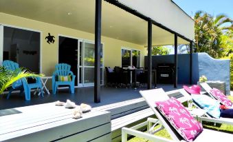 We booked a full week here and was everything a couple could want. Location location location. Right on the beach with beautiful lagoon waters right out your door. The fish life was spectacular and the catch and release fishing out near the reef was over the top good. Adam and Sarah were great hosts and when we came home one evening to find the solar water heater spraying the roof they had a guy fixing it in a thunderstorm!!