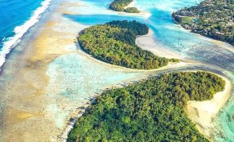 Koka Villa - on a large 3/4 acre setting ending on Muri Beach - no roads to cross! Stroll down the lawn straight on to Muri Beach facing the island 'Taakoka'. On a huge 3/4 acre section set 30m away from the road. Read the many recent reviews.