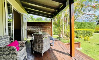 We had a fantastic 8 day stay with our two teenage kids. Great to have two bedrooms, each with their own bathroom, and having a kitchen was great for doing your own breakfasts etc. House had everything we needed and loved the fruit, slice, fresh cut flowers and water on arrival. So close to the beach and we spent plenty of time in the pool. Nice quiet end of Muri beach, so location was perfect. Lovely gardens and friendly staff. Enjoyed chatting with other people staying in other baches on the property. Walking distance to night markets, bakeries and restaurants. We hired a car for the last 3 days to explore the Island a bit more. Nautilus Resort is just next door, so you can pop over anytime for a drink or snack, and the massages were great too! Thanks Adam and Sarah, we will be back again one day : )