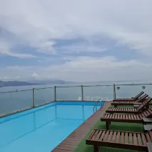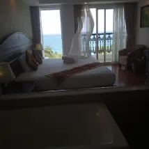 Жил 5 дней, номер с балконом. В номере большое окно, маленький балкон, хоть вид было написано на город, хорошо видно море. Шум волн слышно почти все время, хотя машины слышно тоже. Так во всех отелях у дороги, с этим ничего не поделать. Завтраки понравились, убирались регулярно и хорошо,на верхнем этаже небольшой бассейн, отличный вид на море и город. расположение отличное, если поеду ещё в нячанг определённо вернусь)