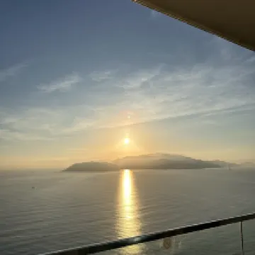 Вид на океан шикарный. Месторасположение отличное, всё рядом - еда на любой вкус, массажи, турфирмы, обменники, остановка электробуса на канатку в Винперл, до Лотоса 10 минут ходьбы. На завтраки выбор большой, тренажёрный зал почти всегда пустой вместе с бассейном и сауной с хамамом. 4 лифта хватает на всех, персонал приветливый.