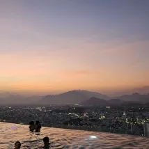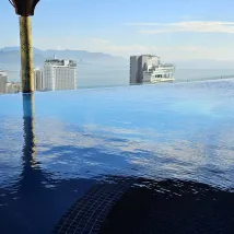 Самое яркое впечатление — это бассейн на 40 этаже. Вид оттуда потрясающий, место действительно атмосферное, но вода в бассейне очень холодная, а лежаков для такого количества номеров в отеле маловато.