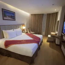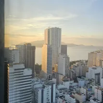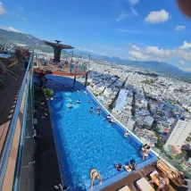Начну с того, что раньше 14.00 вас не заселят и при заселении забирают паспорта, что не имеют права по закону и как только я начала это говорить они сразу забыли и русский язык и английский, стали раздражительно хватать документы. Я перевела в телефоне на вьетнамский, что паспорт мне понадобится в дальнейшем и я его им не оставлю, вообщем в скором времени договорились о залоге в 100 евро( но им это очень не понравилось). Номер хороший для 4 тырех звезд, до 5 ти недотягивают, окно в окно соседним отелем. Шампунь был на дне флакона за все время проживания так и не долили, туалетную бумагу нужно выпрашивать, в сейфе сели батарейки ( пришлось вызывать специалиста ) завтраки неплохие на 4 и 3 этажах шведский стол. выбор всегда есть ( фрукты, суп ФО, яичница, омлет есть всегда). Бассейн большой на 40 м этаже , 2 бара вечером дискотеки до 23.00. Очень шикарный вид на город , лежаков всем хватает- рекомендую. Но самое неприятное было после выселения, нас в 7 утра ждало такси в аэропорт, мы в 6.30 пришли на ресепе, чтобы сдать номер через 15 минут ожидания нам сообщили, что постельное белье в пятнах и с нас 580тыс донгов за Хим. чистку , да я неотрицала, что разлила нечаянно сок на постель, но впервые в жизни с меня берут за стирку денег, я ведь не порвала его. В Итоге я сказала, что готова заплатить и буду писать претензию, на что мне сказали еще подождать. Прошло еще минут 10 ть. Сказали нужно платить. Я сказала, что буду жаловаться в полицию и о чудо при слове полиция нам сразу вернули залог и сказали окей. Я считаю что это просто развод на деньги вышли мы из отеля в 7.20 . Вообщем будьте внимательнее, за весь отпуск это самое испорченное настроение.