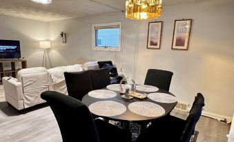 A little outdated,need a better sofa,that one makes you keep sliding forward,toilet too close to tub,overall very clean,was glad about having garage. Supplied well.