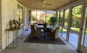 Beautiful yard and multiple outdoor seating areas were very welcoming and comfortable as was the interior of the well-appointed home. Multiple indoor sitting areas with an excellent floor plan allowing both of us couples privacy witch kitchen and living room between the bedrooms. Aesthetic views from all rear windows. We enjoyed the walking trail across the street on tad well.