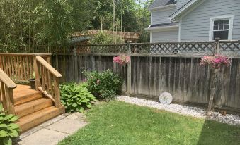 Great spot away from the hustle and bustle of NOTL with a short walk to great coffee and pastries at Soku and a beautiful park with gorgeous sunsets. Perfect size and set up for a family of 4. Decorated very cute and functional. Great shaded back deck for eating or reading and lovely little front porch (a few chairs out front would be a great addition). :) One of my favorite things was the super soft and good toilet paper (as a frequent traveler this is one of my favorite delights at any rental or hotel!). We could have used a few more bath towels as only 2 and there were 4 of us but that’s not a big deal. Only thing would change is a bit less febreeze, but perhaps that was as had recently been cleaned. It was very strong when we first arrived causing us to sneeze quite a bit.