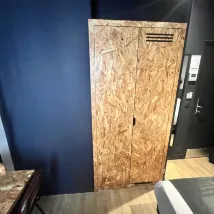 Две односпальные кровати были сдвинуты вместе, образовав большую кровать, и при их движении образовалась щель. Кровать очень мягкая. На простынях были пятна. Особенно страшен лифт. Мусорный отель