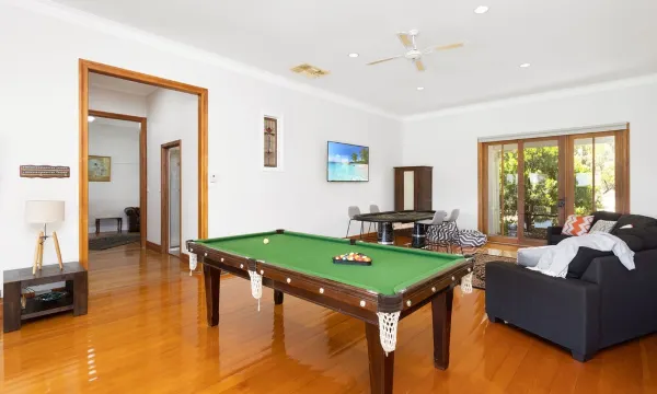 Large home, perfect for a large family or combined family's holiday. We have a heated pool, games room, fire pit. Walking distance to the billabong, many vineyards in our area to enjoy. River is close by. Many fantastic tourist attractions, including Woodsies Gem Shop within walking distance, where you can enjoy snacks, light lunch, garden maze, Gem cave, Gem shop and childrens playgroundAbout pets:No pets allowed.About checkOut:Check out before 10:00 AM.About children:Children allowed: ages 0-17.About checkIn:Check in after 2:00 PM.About smoking:Smoking is not permitted.About events:No events allowed.