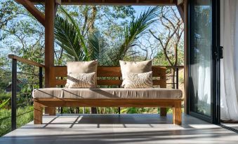 The 4 cabinas offer indoor and outdoor showers with Raw Botanical products for guest use if desired, mini-fridges, room safes, and a beautiful private terrace with a day bed.