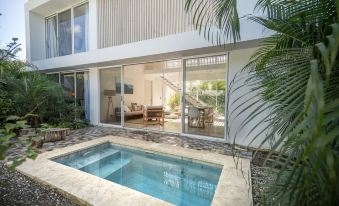 The house 3 bedrooms, 2 bathrooms, and private pool, suitable for 6 people. The master bathroom has a private patio designed to bring nature inside the house.
