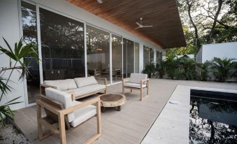 Welcome to Villa Istria, this full AC exquisite 3-bedroom luxury villa, a modern home where comfort meets sophistication in the heart of a tranquil small gated community next to an NCA reserve. Revel in the perfect blend of modern living and natural beauty, surrounded by the lush embrace of Carao trees, wake up to the sound of Howler monkeys and enjoy the house's vibrant flower gardens.