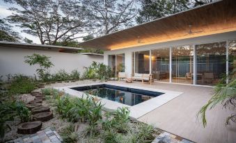 Relax and rejuvenate by taking a dip in the private pool, surrounded by the serenity of the reserve. Embrace the comfort of air conditioning throughout the villa that is below the shade of trees; providing a cool haven after a day under the sun. Stay connected with high-speed optic fiber 100mbs internet, ensuring that you can seamlessly blend work and leisure during your stay.