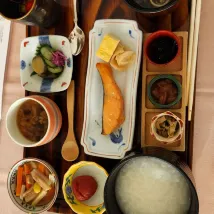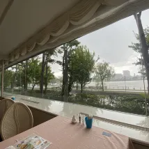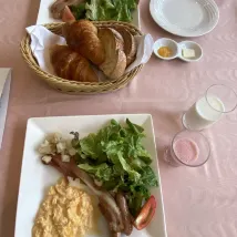 川沿い景色が見れる朝食レストラン。 和食か洋食を選ぶのですが、どちらも大変美味しかったです。 ビュッフェスタイルと違い落ち着いて食べれます。 部屋も古い建物を上手に改装してるので、今時のホテルよりかなり広く感じます。