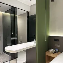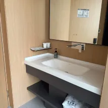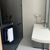 Отличное место для отдыха после перелета. Всего 15 минут езды на такси от аэропорта. Сотрудница на стойке регистрации очень внимательно отвечала на все вопросы. Все номера оснащены голосовым управлением, что очень удобно. В ванной комнате есть отдельные зоны для влажной и сухой уборки. Номер очень чистый. Можно даже заказать доставку еды на вынос роботом. В целом, отличное соотношение цены и качества.