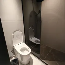 Окружающая среда приятная и чистая, туалет разделен на сухую и влажную зоны.