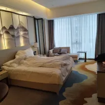 Обслуживание на стойке регистрации очень хорошее. Сяо Ян помог мне улучшить номер. Номер очень просторный, на высоком этаже, с панорамным видом и прекрасным ночным видом.