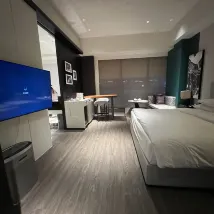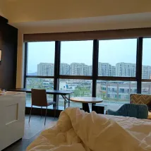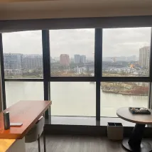 Kaiyue Shangcui — молодой бренд Kaiyue. Он в основном отражает и исследует географические особенности местоположения отеля и дает гостям отеля возможность понять местную культуру. Этот отель воплощает в себе местную культуру игры в маджонг Нинбо, которая хорошо отражена в дизайне и мягкой мебели общественных зон. Особенно это отражается во всей стене с маджонгом в третьем ресторане и висящих картинах в лобби-баре. Местные карты Нинбо также становятся украшениями в лифтовом холле и комнатах для гостей благодаря художественным приемам. Отель расположен в коммерческом районе и частично окружен искусственным озером. Удобства отеля в основном соответствуют пятизвездочным стандартам. Много усилий было вложено в оформление общественной зоны. Стойка регистрации имеет островную планировку, что очень стильно. По вкусу напоминает Андаз и Индиго. Комната для гостей небольшая по размеру и относительно просто оформлена. Поскольку эркер недостаточно велик, санузел и душевую разделяют на две комнаты, оставляя место для входа и гардеробной. Сантехника и принадлежности относительно средние. Постельные принадлежности по-прежнему очень удобны, а электрические шторы обладают хорошими светозащитными свойствами. Помимо небольшого дивана и небольшого столика, расставленных у окна, в качестве розетки устроен деревянный ящик от пола до потолка, который лучше соответствует офисным потребностям деловых людей. Бар расположен возле окна, что относительно удобно использовать. Планировка таких комнат для гостей до сих пор очень нова. Просто в ванной нет места, чтобы положить полотенца, и после мытья рук приходится идти в душевую, чтобы вытереть руки, что неудобно. Звукоизоляция комнаты довольно хорошая, и всю ночь было очень тихо. Коммерческий объем внизу по-прежнему очень велик. Спустившись вниз и перейдя мост, вы увидите торговую площадь Кайюань. Напротив, дела внизу отеля относительно пустынны. Фитнес-центр отеля находится на 12 этаже. Бассейн относительно небольшой и обслуживается третьей стороной. Людей там немного. Тренажерный зал небольшой, конфигурация оборудования относительно обычная, подходит только для общих упражнений. Здесь нет стойки для штанги и тренажерного зала. Я пообедал в Yuanyuan 600 на первом этаже отеля. Блюда были небольшими, но относительно изысканными. Вкус и обслуживание были безупречными, что лучше отражало местные соленые и свежие характеристики Нинбо. Завтрак отеля тоже здесь, не так уж и разнообразен, но лапша и тушеные вонтоны, приготовленные в открытом ларьке, по-прежнему хороши. Вертикальная планировка ресторана приводит к тому, что блюда разбросаны, а открытые прилавки слишком коротки, что делает его довольно многолюдным, когда там много людей. Парковка в подземном гараже отеля в настоящее время бесплатная. Обслуживающий персонал отеля относительно молод и неопытен, но очень полон энтузиазма. Ключ-карта отеля изготовлена из дерева и уникальна. Этот отель расположен в районе Чжэньхай города Нинбо, который не является центральным районом города Нинбо. Поездка до центра Нинбо занимает более 20 минут. Его расположение не является преимуществом, но если у вас есть желание осмотреть город, этот отель также может стать вариантом.