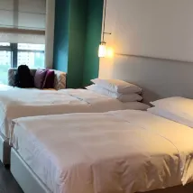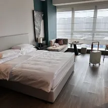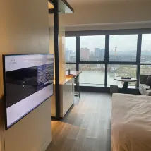 В комнате чисто и опрятно, есть милый робот, который доставляет вещи в комнату. В отеле действительно разрешено привозить с собой домашних животных (только собак, а не кошек), и это здорово! Завтрак был нормальный, йогурт был вкусным.