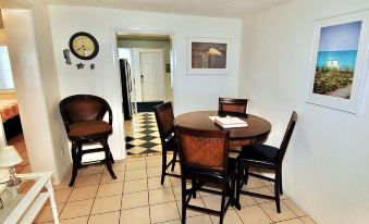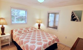 Located at 409 Shore Road, Nokomis, FL 34275, we have been proudly serving guests since 2003. Our guests return again and again to enjoy our clean, quiet, safe and comfortable accommodations in a great residential beach neighborhood. This charming villa is located in our Seahorse Shores duplex and is thoughtfully outfitted for your maximum vacation enjoyment. The unit is tastefully appointed, non-smoking, and has two bedrooms, one bath, living/dining area, kitchen and a spacious, sunny Florida room. Your villa is just a half mile walk by sidewalk from your front door to Nokomis Beach.