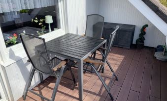 Apartment house "Knurrhahn". In the resort, 1.2 km from the sea, 1.2 km from the beach, in a cul-de-sac. In the house: central heating system. Parking at the house. Supermarket 800 m, restaurant 750 m, bakery 800 m, bus stop "Norden GS" 350 m, railway station "Norddeich" 1.7 km, ferry 1.7 km, sandy beach 1.2 km, outdoor swimming pool 13 km, indoor swimming pool 850 m. Golf course (18 hole) 8 km, surf school 1.2 km, tennis 1.7 km. 3-room apartment 75 m2 on 1st floor. Beautiful and cosy furnishings: living/dining room with cable TV (flat screen), radio. Exit to the balcony. 2 rooms, each room with 1 double bed (2 x 90 cm, length 200 cm). Small kitchen (oven, 4 ceramic glass hob hotplates, toaster, kettle, microwave, electric coffee machine). Shower/WC. 2 balconies. Balcony furniture. Facilities: washing machine, children's high chair (extra). Internet (WiFi, free). Please note: non-smokers only. Smoke alarm.