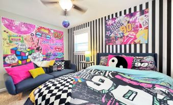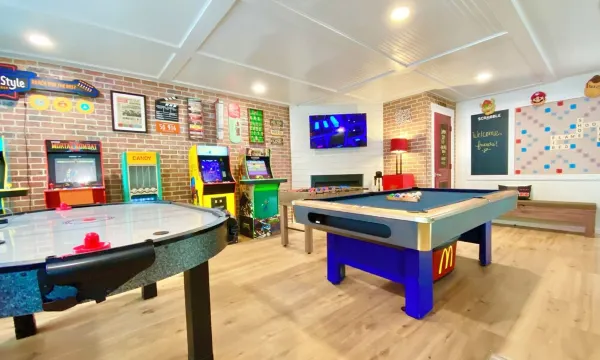 This 3-bedroom decade themed arcade house captures the essence of the past with all the modern amenities you could ever want. Step inside and you'll be transported back in time to an era of neon lights, big hair, and arcade games galore.