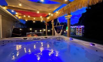 Located in a quiet and friendly neighborhood, this home is just minutes away from local shops, restaurants, and entertainment. With its unique decade-themed arcade room, stunning tiki-themed backyard, this home is the perfect choice for anyone looking for a one-of-a-kind experience!