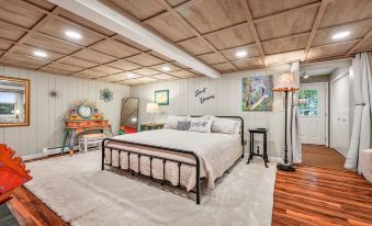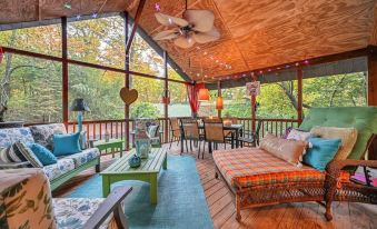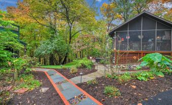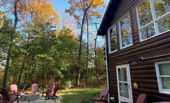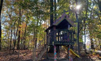 A 3 bed/2 bath cabin retreat unlike anything you've ever seen! Hand-painted furniture and eccentric artwork fills the bright, yet cozy, 2,100 sq. foot space. You'll never be at a loss for things to do or places to relax -- with a hot tub, gas fire pit, grill, spacious screened-in porch, pond and peaceful-sounding water fall, a book nook loft, indoor fireplaces, a kids’ playhouse, and an arcade room. Only four mins from Annville and 20 from Hershey, you're surrounded by woods but w/the convenience of a cute town and delicious restaurants nearby.About pets:No pets allowed.About checkOut:Check out before 11:00 AM.About children:Children allowed: ages 0-17.Please know that our cabin is NOT child-proofed..About customRules:Quiet hours are after 10PM on weeknights and 11PM on weekends; no outdoor music, games or loud activity outside after this and before 8AM..If using the hot tub, you must read and obey all safety warnings and rules posted at the property. Use the hot tub at your own risk..About checkIn:Check in after 4:00 PM.About smoking:Smoking allowed: in designated areas.Smoking is only allowed outside on the back patio.About minBookingAge:Minimum age to rent: 23.About events:No events allowed.