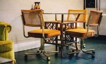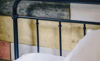 Unwind in the cozy living room, where industrial flair meets modern comfort. Entertainment options abound, from a TV for your favorite shows to a curated selection of books and board games for a cozy night in.