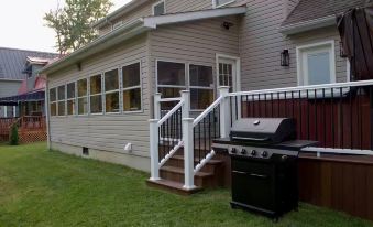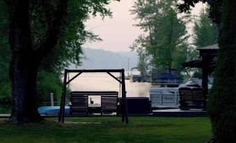 Out back, a private dock sits along the creek, offering direct and quick access to Lake Chautauqua. The dock can comfortably accommodate up to three boats, making it a perfect choice for lake lovers, boaters, or those just looking to unwind by the water. A hot tub and fire pit are also available for your enjoyment, perfect for relaxing evenings after a day on the lake.