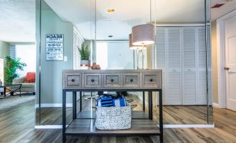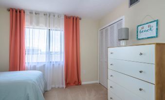 The beach feels almost private. There were times during the day when there was literally no one in sight. The water is shallow, warm and peaceful - at times almost glasslike - but you do get the sound of the surf that you’re looking for at the beach. We saw several dolphins and manatees from our balcony. The condo has everything you would need for the beach - towels, chairs, umbrellas, a small cooler, and a wagon. The kitchen has anything you would need, including several sizes of coffee maker and a Keurig. The fan on the screened in porch was nice on a hot day, and the additional small balcony was great to stand on to get pictures of the sunsets without the screen getting in the way. Tovi was very kind and attentive. You won’t regret staying here!