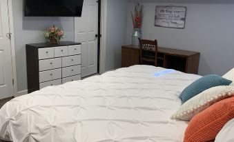 This place is decorated so cute and the king bed was so comfortable!! Lots of extra touches and everything you could need. We were just there for a quick overnight on a road trip but it would be a great place to stay for a full vacation. One thing to note is that it is in the basement under the owners’ home. Separate entrance and completely private but it was unclear to us in the original listing that it was a part of the owner’s actual home where they reside. We would absolutely stay there again!! Just thought people might like to know that detail before booking.