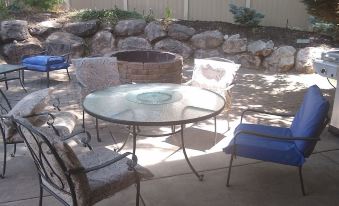 Large Covered Bar B Cue area, fire pit, East Side of property out of the sun for comfort and enjoyment. Large bathroom with large walk in shower / separated toilet. Kitchen is well stocked. Mountain Spring water available https://www.atlasobscura.com/places/stump-spring . Our guests have really enjoyed this with a dispenser cold for after a ride, or hot for a beverage you like. Guest Suite has private, well lit entrance just a few steps away from off street driveway parking. Trailer parking available with electric service 115 with prior arrangement and additional fee. Small Peach orchard adjacent to property with seasonal product for sale. Nothing as good as an off the tree peach in season. Outdoor yard toys available for use Croquet, Bocchi ball etc .. 2 kayaks, one pictured and available to rent on property daily, range of life vests as well. Great venue for a wedding reception (50 people outdoors), family gathering, birthday. Laundry available onsite by arrangement. Quiet. Owner has 2 well behaved dogs on property that are strictly separated from guests and children at all times, unless of course you are in need of some comfort therapy by your choice - and can use some doggie love and affection ( no charge for the loves) just want to let people know who may have allergies - they happen! just want you to know in advance. Relative to animals... Your pet 900 lb gorilla won't work out but ask us first about your pets we want your stay to be peaceful, good resting and comfortable our pets are part of us and added fees will apply Television has free basic Amazon Prime and Peacock services and too many free channels to describe. You can screen cast from your phone or tablet as well. About pets:Pets allowed: dogs (limit 2 total).Do not leave pets alone in guest suite..About checkOut:Check out before 11:00 AM.About children:Children allowed: ages 0-17.High chair avail. Kitchen child safe..About customRules:Quiet time is 10 pm to 7 am..No pets alone in guest suite. Pet daycares near by. Pets can be outside with owners watching. Pick up after pets. No pets on furniture or beds..About checkIn:Check in after 3:00 PM.About smoking:Smoking is not permitted.About minBookingAge:Minimum age to rent: 22.About events:No events allowed.