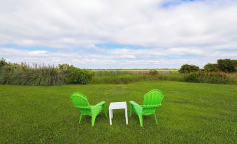 * After a sun-soaked day, rinse off in the outdoor shower and challenge your group to **cornhole or wiffle ball**