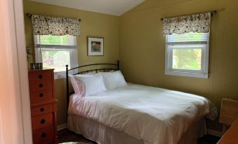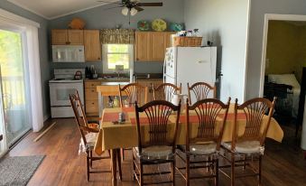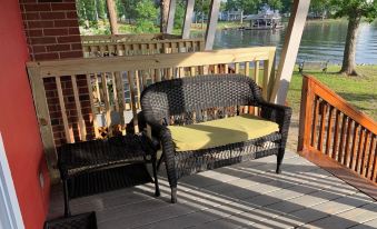 Rest and relax at Jeff and Nodie's place. There is no other cottage with its spectacular view of the main lake.. The view of the water is the same whether you sit at the dining table looking through a sliding glass door, on the porch or around the stone fire pit. The newly renovated cottage has an open floor plan with a full kitchen and family room. The porch with an outside dining area is located directly off of the kitchen. The kitchen is equipped with many amenities including a microwave, blender and an air fryer and is fully stocked with pots and pans. There are two newly decorated bedrooms. One has a queen size bed and the other has twin beds. In the family room there is a queen sofa bed. A full size washer and dryer are available if you need to wash during your stay. Jeff and Nodie's Place has WI-FI and Cable TV.