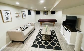 Bring the whole family and enjoy our 1700 sq ft basement retreat ready for fun and or relaxation. Modern/ Industrial feel but yet cozy and comfortable. All Guest Bedrooms have walk-in closets and master suite enjoys a private bathroom.About pets:No pets allowed.About checkOut:Check out before 10:00 AM.About children:Children allowed: ages 3-17.About checkIn:Check in after 4:00 PM.About smoking:Smoking is not permitted.About events:No events allowed.