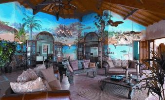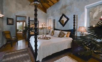 This luxury Estate is the only beachfront property that comfortably accommodates up to 12 guests in 6 king suites, on its grand floor walk-in Main Level. The villa's spacious floor design is truly one of a kind and is separated by two private wings. The Magens Bay Wing includes the Primary Suite, and two other bedrooms, while the Picara Point Wing encompasses the Owners Suite, Junior Suite and one additional bedroom. The Pool and Beach Suite Level (Second Floor), only 12 steps down, offers five (5) expansive King Suites with living and dining areas and collectively, with the main level, can host up to 22 guests. The Spa and Royal Suites, situated on the 3rd and 4th level closest to the lower sun and soak pool and Beach, can accommodate an additional 12 guests. All include air conditioning, full private baths, ultra-king bedding, unique faux finishes, original art, and stylish décor from around the world.
