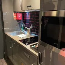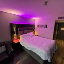 Our stay at Roomzzz was excellent! Very modern rooms and very clean. As someone who needs to eat a lot, and frequently, the kitchenette was a great addition. Check in and out was quick and simple. Hot drinks and pastries in a morning is a lovely little bonus. Excellent location, just a 5-10 minute walk from the centre. Parking was secure and good price at £10 per night in comparison to other local parking facilities, and they let us park for extra time on check out day so we could go grab some breakfast. Staff were all friendly and very helpful. We had some noisy neighbours wake us up at 1am and the staff handled it very promptly.