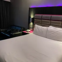 We had an enjoyable stay at Roomzzz Nottingham. We had a concert at Rock City so this hotel is in a prime location with the venue literally on the door-step. There was parking available for £10 at the hotel and spaces there for us when we arrived so we saved money not having to use the Q-Park (which is also very close if need-be). The room was clean, bed was comfy, air con worked great and the kitchen area had everything you need for a longer stay, no issues at all. They have instant coffee in the room with a few milks but if you prefer there is a coffee machine downstairs in the reception that has take-away cups so you can simply get a coffee and take back to the room. They also had croissants in the morning included in the price in the reception that you can take back to the room or eat there. The staff were lovely and the reception manned 24 hours, no complains and if we have another concert at rock city or the rescue rooms we will be staying here again.