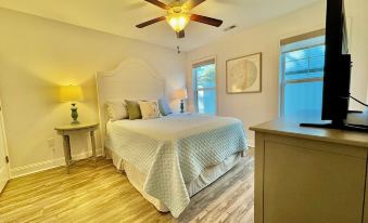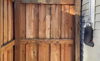 Plenty of parking (up to 4 cars) in the front driveway. Ample space in the driveway to store all your beach gear. When you come home, rinse off and rejuvenate in the outdoor shower. Cozy up with good book and a cup of coffee on the Screened in Porch. Out back, a charcoal grill is provided to cook all your favorites. Enjoy a game of catch with the kids, or fetch with the pups in the fully privacy fenced backyard.