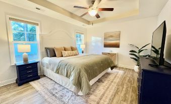When its time for bed, pick your favorite spot to retire. The primary bedroom has a huge en-suite bathroom, a king bed with extra pillows and super soft sheets, a Smart TV, and plenty of storage. The 2nd large bedroom boasts a queen bed, large closet and smart tv making this home perfect for 2 families. The 3rd bedroom with 2 bunk beds - perfect for the kids. The main bathroom is equipped with a tub/shower combination.